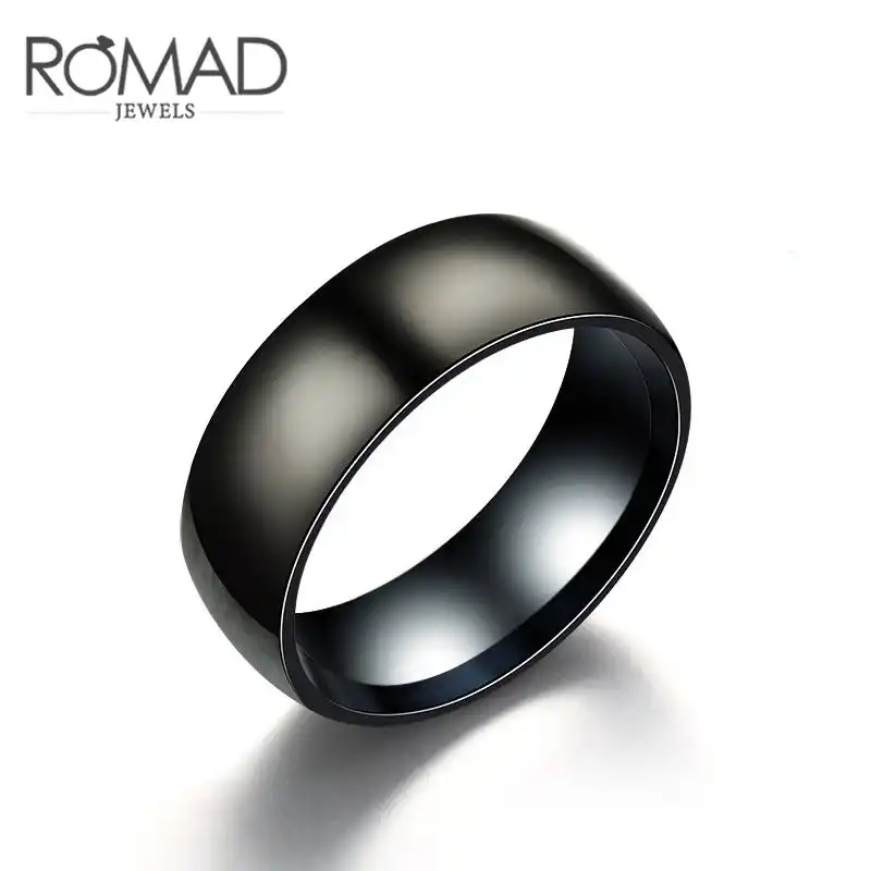 8mm Stainless Steel Ring Band Titanium Black Men S Rings