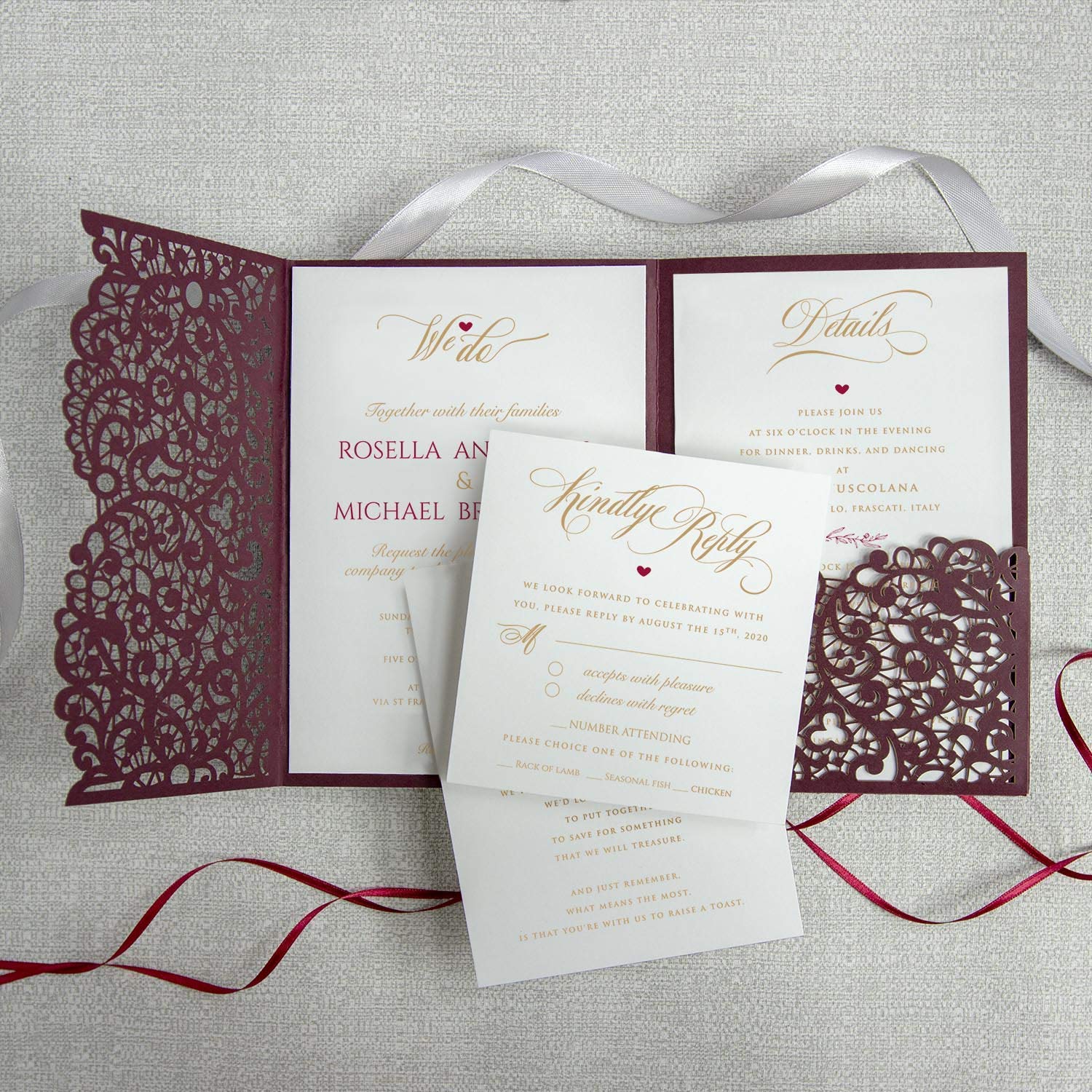Wedding Invitations With Envelopes Laser Cut Cards Tri Fold