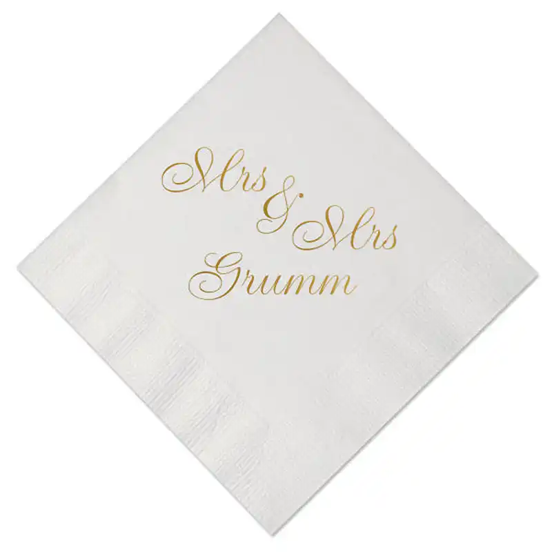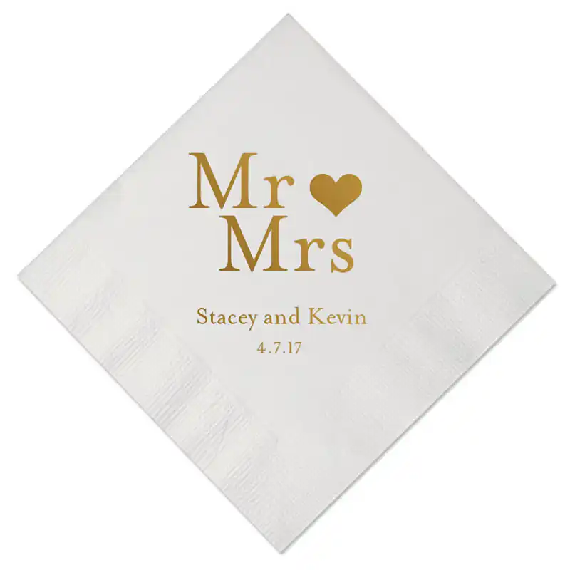 100pcs Personalized Gold Printed Napkins Mr Mrs Name Engagement