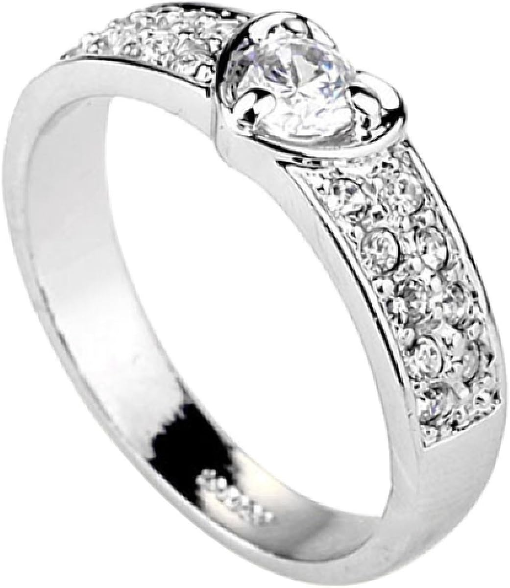 White Gold Plated Simple Solitaire Love Heart Ring With Cubic