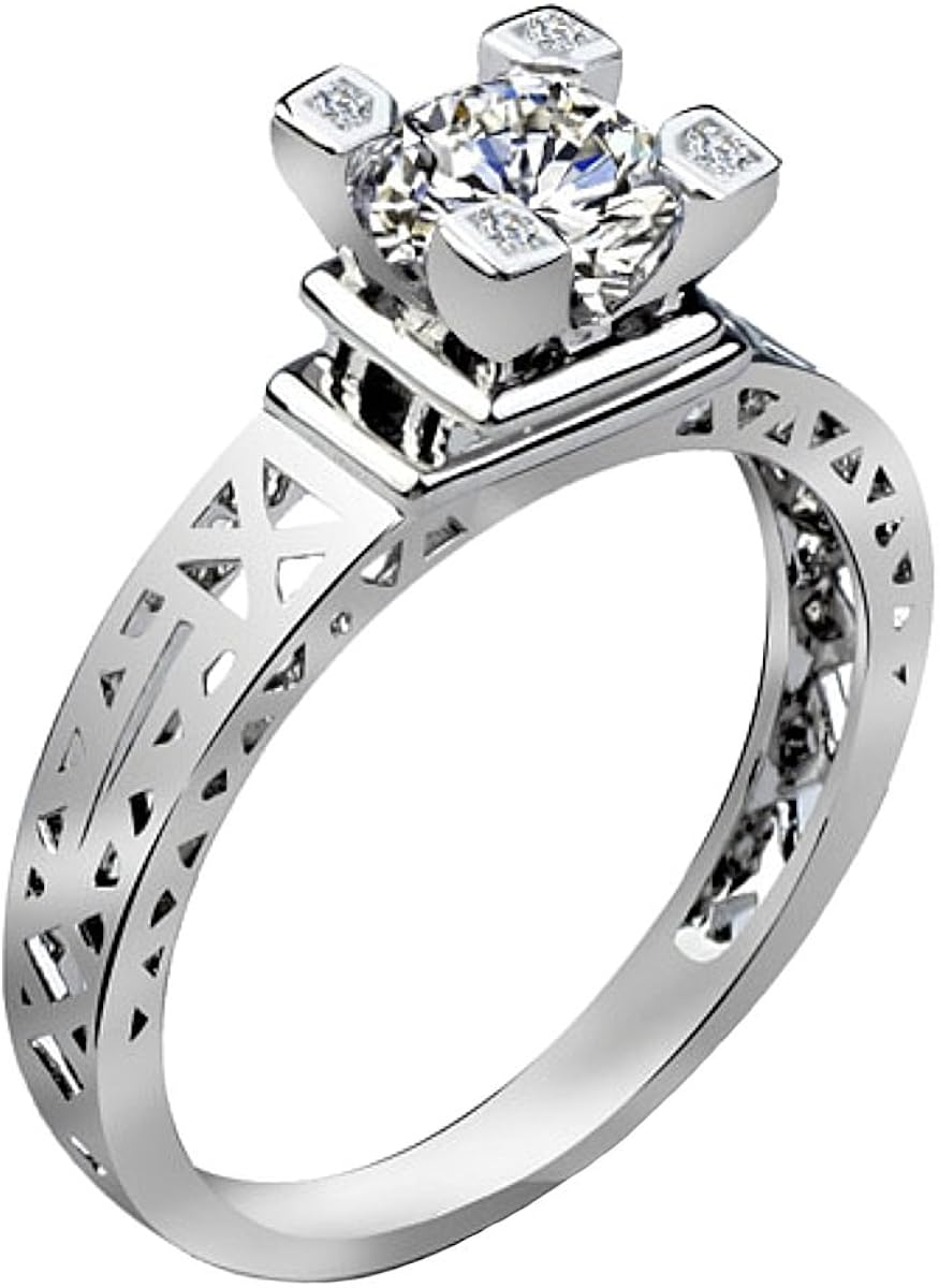 White Gold Plated Solitaire Style Eiffel Tower Ring With Aaa Round